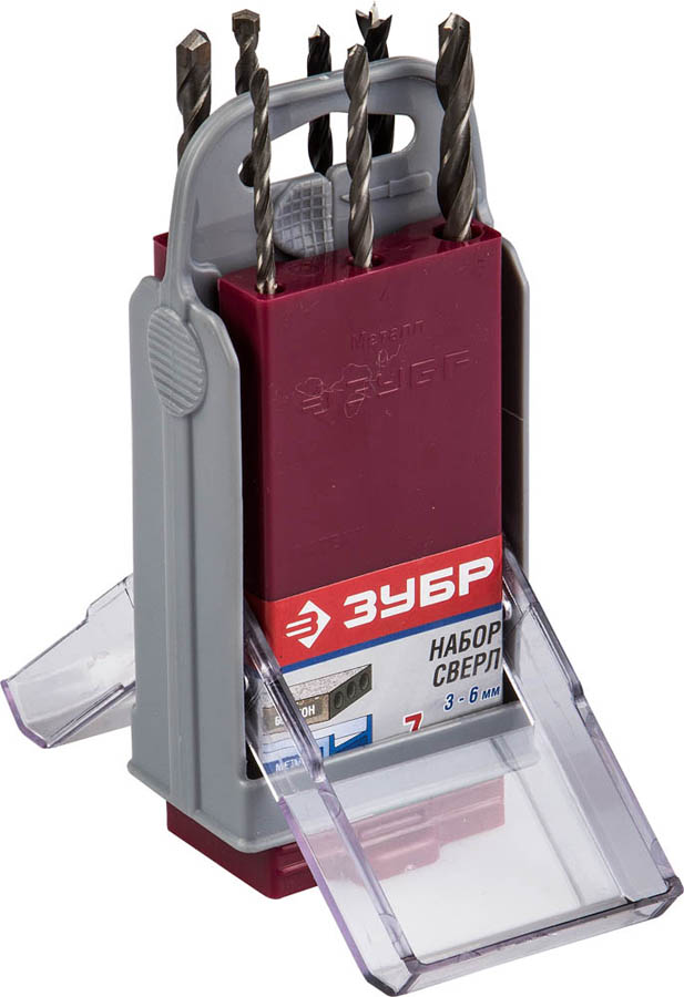 Набор сверл комбинированный ЗУБР 4-29704-H7-SB, предназначен для работ в домашних бытовых условиях при сверлении металлических изделий, дерева и строительного кирпича. Материал сверл по металлу: Сталь 4241; материал сверл по дереву: Сталь 45Mn; материал сверл по кирпичу: 40Х + ВК8.