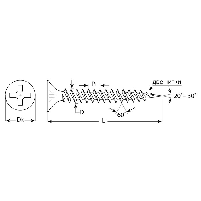 - Резьба с частым шагом разработана для крепления гипсокартона к металлическим профилям,