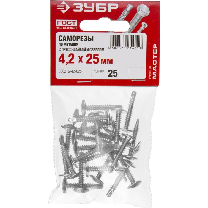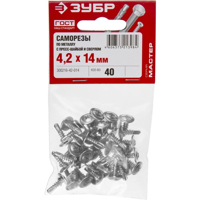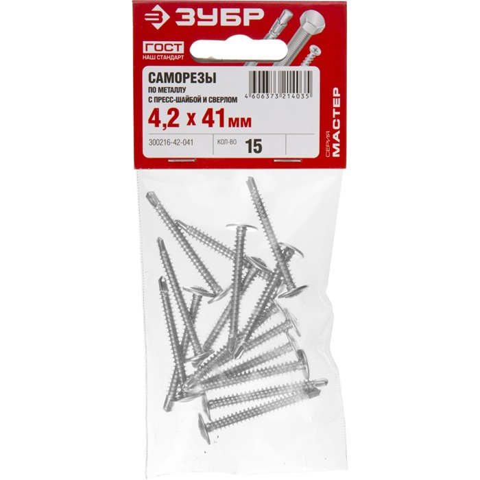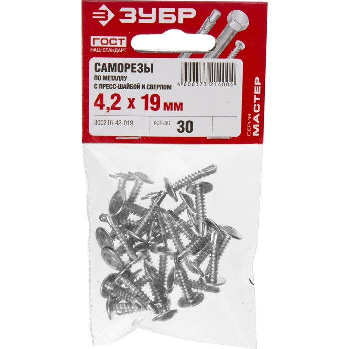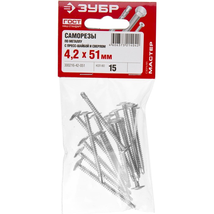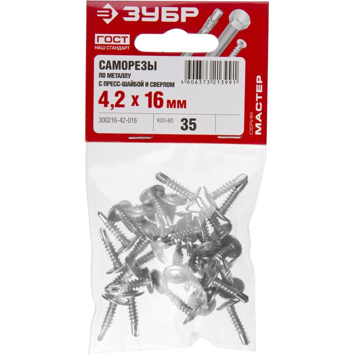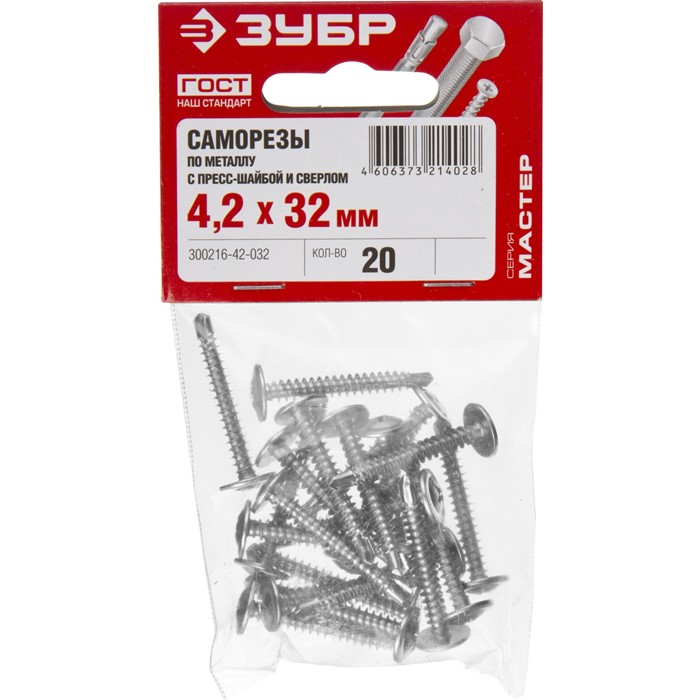 Саморезы ПШМ-С с пресс-шайбой и сверлом, пакет 4-300216-42-032 Зубр