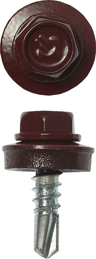 Саморезы СКМ кровельные, RAL 3005 темно-красный, 19 x 5,5 мм, 500 шт, для металлических конструкций, ЗУБР Профессионал