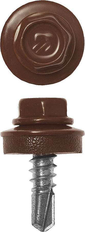 Саморезы СКМ кровельные, RAL 8017 шоколадно-коричневый, 25 х 5.5 мм, 420 шт, для металлических конструкций, ЗУБР Профессионал