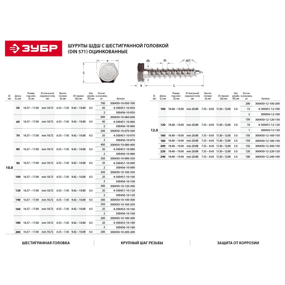 ЗУБР 80 х 8 мм, 2 шт., DIN 571, шурупы с шестигранной головкой 4-300456-08-080