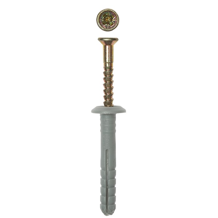 - Грибовидный бортик защищает фиксируемую конструкцию от повреждения при забивания гвоздя, а также предотвращает проваливание дюбеля в отверстие,