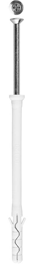 Дюбель-гвозди ЗУБР 4-301375-08-140, предназначен для быстрого сквозного монтажа различных конструкций к полнотелым основаниям (бетон, кирпич, природный камень). Дюбель-гвозди изготовлены из высококачественных материалов и используются для быстрого сквозного монтажа различных элементов и конструкций к несущему основанию. Находят широкое применение в быту для крепления полок, шкафов, картин, светильников, сантехники и т.п. Дюбель вставляется в предварительно просверленное сквозное отверстие, гвоздь забивается при помощи молотка. Цилиндрический бортик защищает фиксируемую конструкцию от повреждения при забивания гвоздя, а также предотвращает проваливание дюбеля в отверстие. Шлиц PZ и кольцевая накатка на гвозде позволяют произвести демонтаж соединения при помощи отвертки. Полипропилен устойчив к воздействию влаги. Цинковое покрытие гвоздя надежно защищает от коррозии. Благодаря этому дюбель-гвозди могут использоваться при выполнении наружных работ.