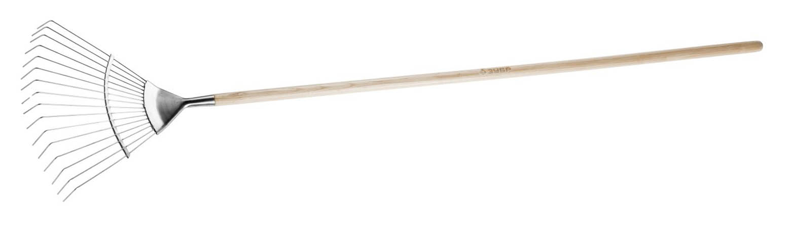 Грабли ЗУБР "ЭКСПЕРТ" веерные из нержавеющей стали, деревянный черенок из ясеня, 16 круглых зубцов, 440х360х1735мм