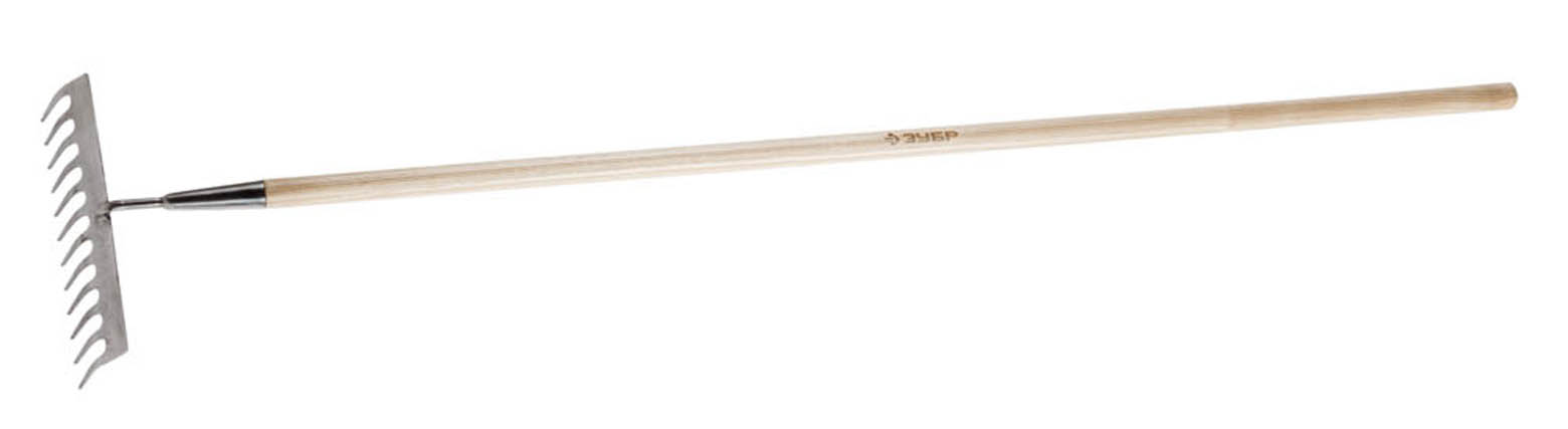 Грабли ЗУБР "ЭКСПЕРТ" из нержавеющей стали, деревянный черенок из ясеня, 12 прямых зубцов, 300х90х1460мм