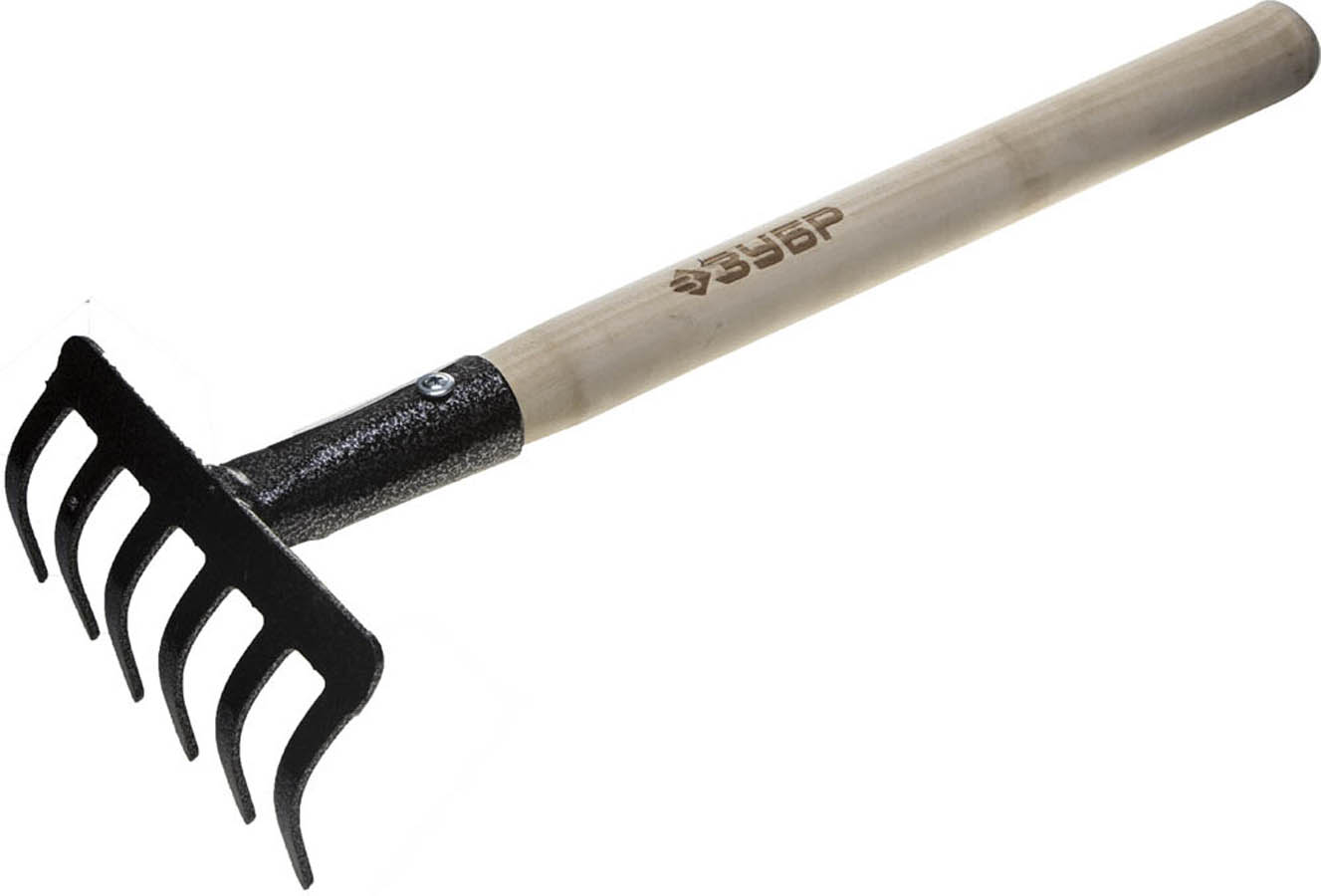 ЗУБР 6 прямых зубьев, 145x80x400 мм, грабли садовые с деревянным черенком