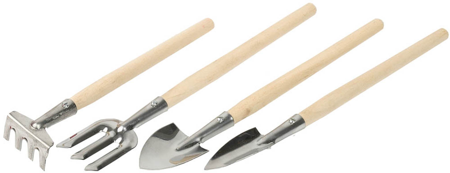 Набор инструменты для ухода за комнатными растениями ЗУБР 4-39691-H4, предназначен для ухода за комнатными растениями и состоит из четырех инструментов: узкой лопатки, широкой лопатки, посадочной вилки, грабелек. Рабочие части инструментов изготовлены из нержавеющей стали, рукоятки - из твердой древесины. Инструменты имеют малые габариты и вес, просты и удобны в применении, поэтому идеально подходят для домашней оранжереи или зимнего сада. Рабочие части инструментов изготовлены из высококачественной нержавеющей стали, не подвержены коррозии. Деревянные рукоятки плотно крепятся к металлическим частям, предотвращая поломку инструмента при работе с твердым грунтом. В набор входят самые необходимые инструменты, с помощью которых можно рыхлить, окучивать, проводить борозды, выкапывать посадочные лунки, сгребать землю, собирать мусор.
