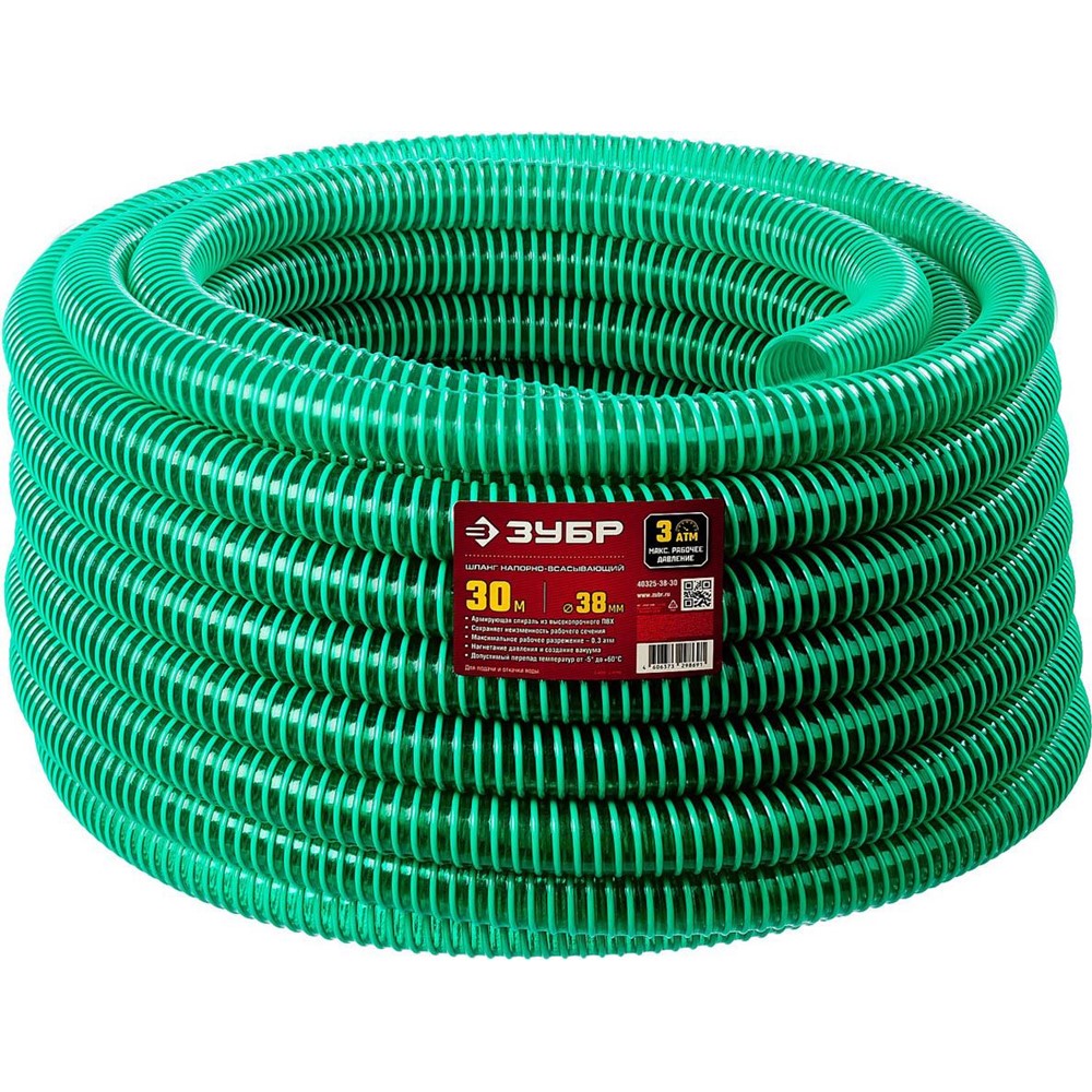 ЗУБР Шланг напорно-всасывающий со спиралью ПВХ, 3 атм, 38мм х 30м