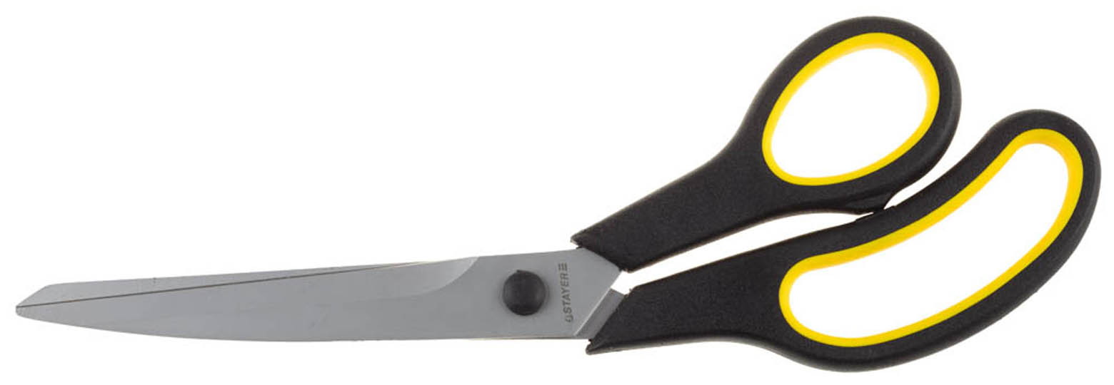 Ножницы хозяйственные STAYER 40466-24, предназначены для разрезания как толстых, так и тонких листовых материалов (ткани, картона, резины, кожи, бумаги, пленки). Они изготовлены из высококачественной нержавеющей стали и имеют прецизионную заточку. Благодаря антифрикционному покрытию обеспечивается легкий рез. Специальная заточка режущих граней обеспечивает точный рез с минимальными усилиями. Благодаря закалке обеспечивается сохранение остроты лезвий на длительное время. Эргономичные двухкомпонентные рукоятки обеспечивают комфорт при использовании.