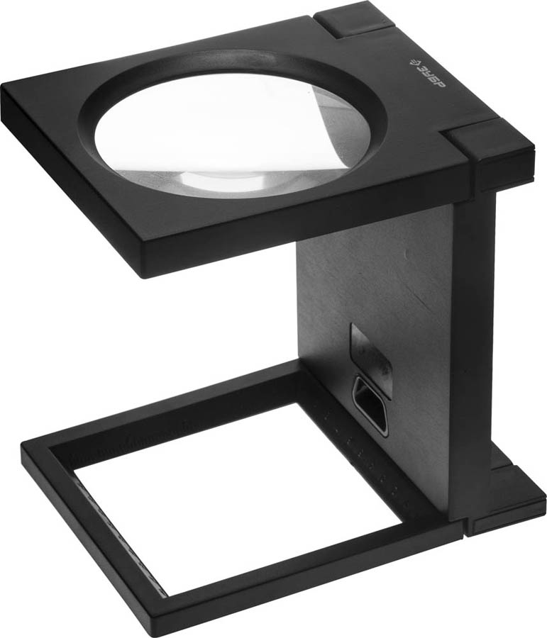 Лупа ЗУБР "МАСТЕР" складная на подставке, светодиодная подсветка, 2 кратное увеличение, диаметр 110мм