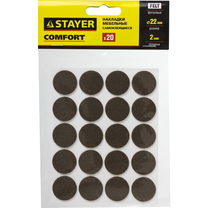 Накладки STAYER "COMFORT" на мебельные ножки, самоклеящиеся, фетровые, коричневые, круглые - диаметр 22 мм, 20 шт