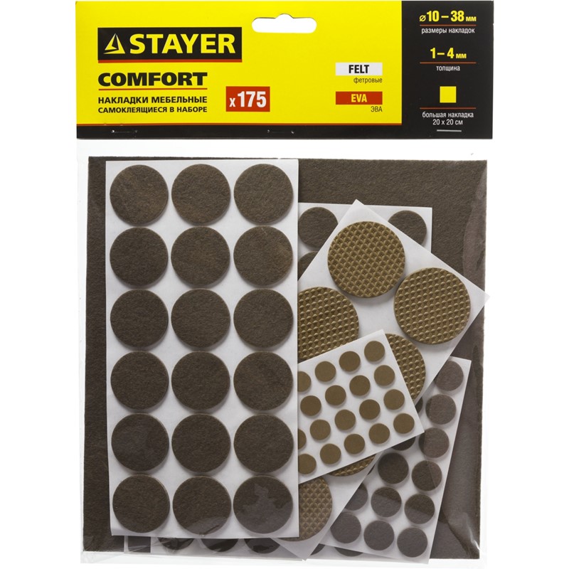 Набор STAYER "COMFORT": Накладки самоклеящиеся на мебельные ножки, 175 шт, коричневые