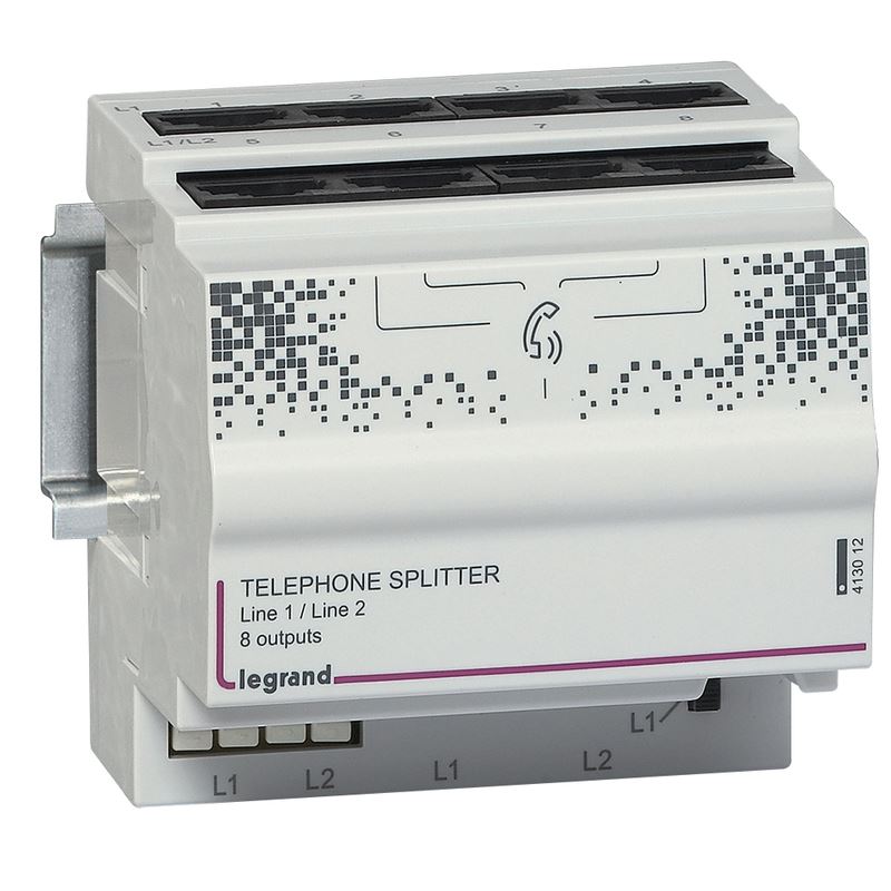 Legrand Сплиттер телефонный на 8 выходов или на 2 линии телефонной связи. Размер: 4DIN