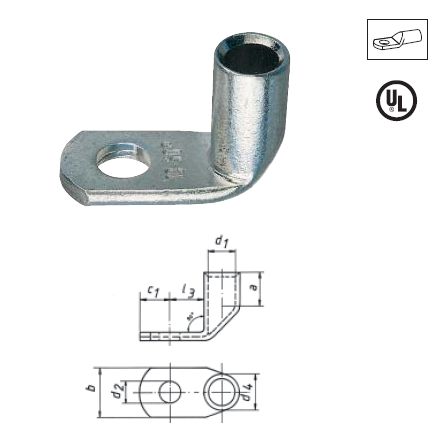 Медные угловые трубчатые кабельные наконечники облегченного типа, угол 90°, M10 / 6 мм KLAUKE 41R10