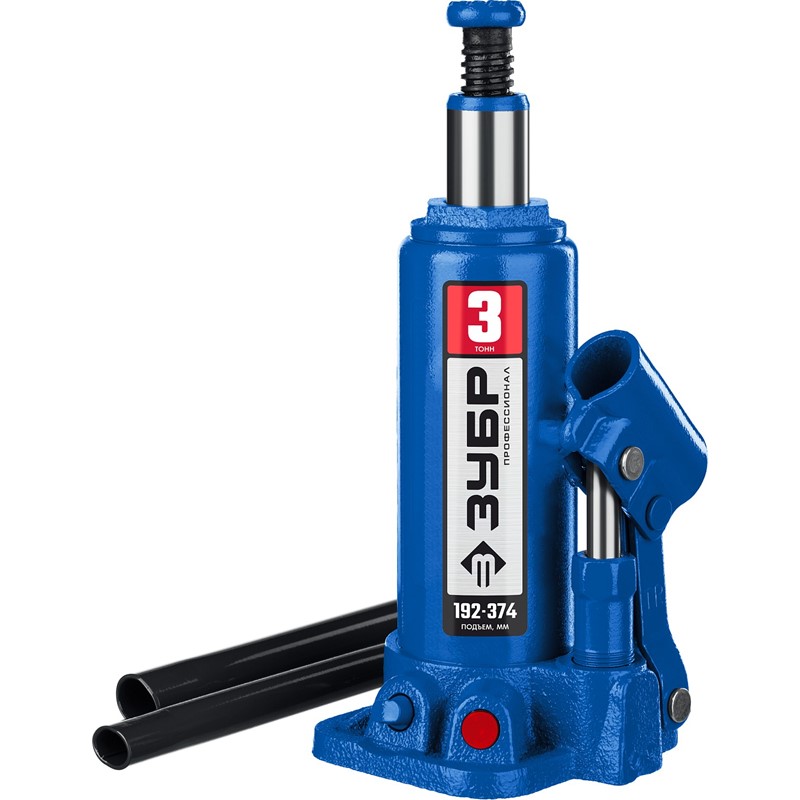ЗУБР 3т, 192-374мм домкрат бутылочный гидравлический, Профессионал