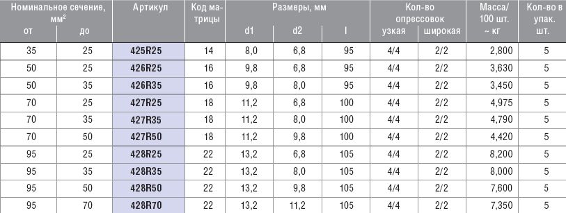 Алюминиевые соединительные гильзы с перегородкой для жил разных сечений, от 70 до 25 мм KLAUKE 427R25