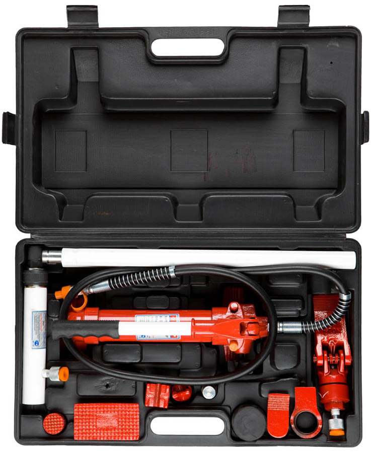 Набор ЗУБР "ЭКСПЕРТ" гидравлический, портативный для правки кузова, в пластиковом кейсе, 4т, 62МПа