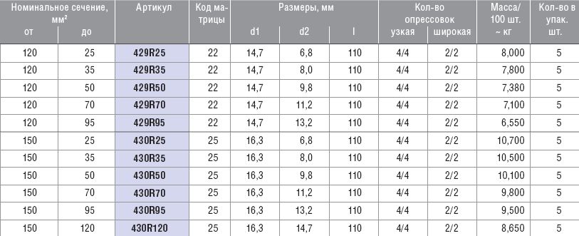 Алюминиевые соединительные гильзы с перегородкой для жил разных сечений, от 150 до 35 мм KLAUKE 430R35