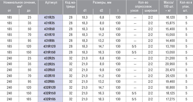 Алюминиевые соединительные гильзы с перегородкой для жил разных сечений, от 240 до 120 мм KLAUKE 432R120