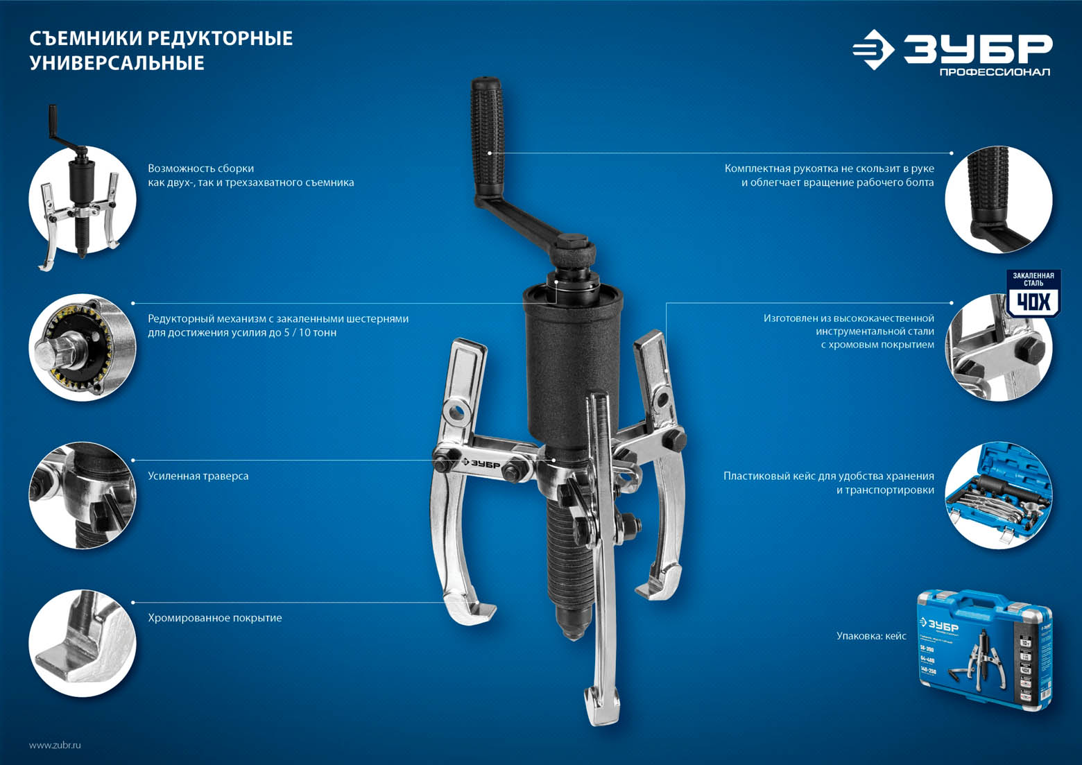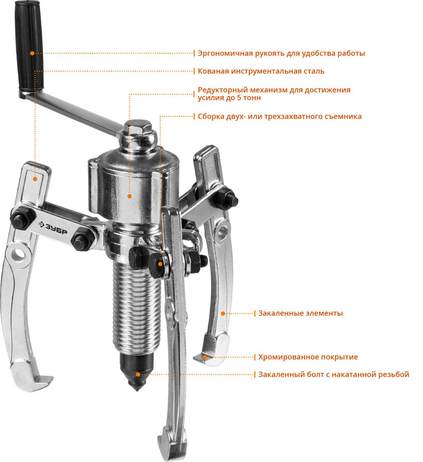 Съемник редукторный универсальный, ЗУБР Профессионал 43301-5, 5 т