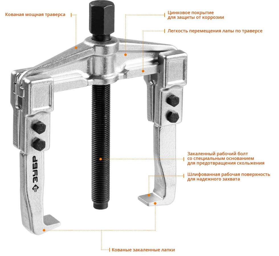 Съемник раздвижной 2-захватный, 100 мм, ЗУБР Профессионал 43310-115-100