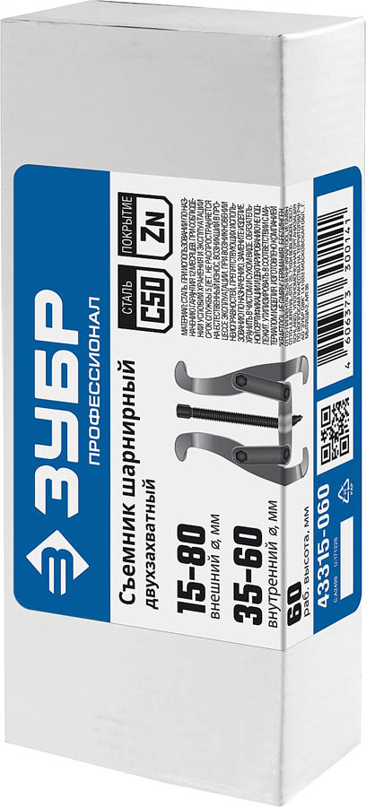 Съемник шарнирный 2-захватный, 60 мм, ЗУБР Профессионал 43315-060