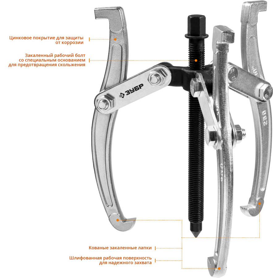 Съемник шарнирный 3-захватный, 160 мм, ЗУБР Профессионал 43318-160