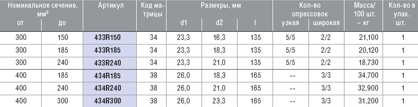 Алюминиевые соединительные гильзы с перегородкой для жил разных сечений, от 400 до 185 мм KLAUKE 434R185