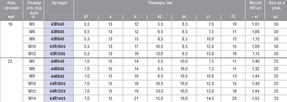 Медные угловые трубчатые кабельные наконечники облегченного типа (стандарт Klauke), угол 45°.