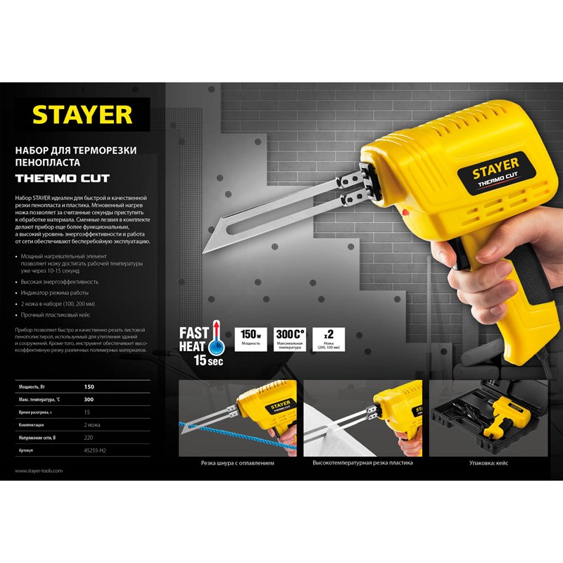Набор "Thermo cut" для терморезки пенопласта, пластика, STAYER 45255-H2, 150 Вт, 2 ножа