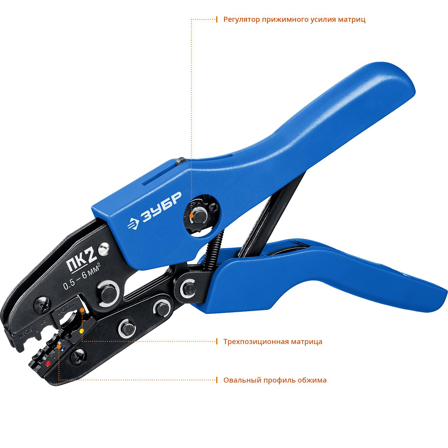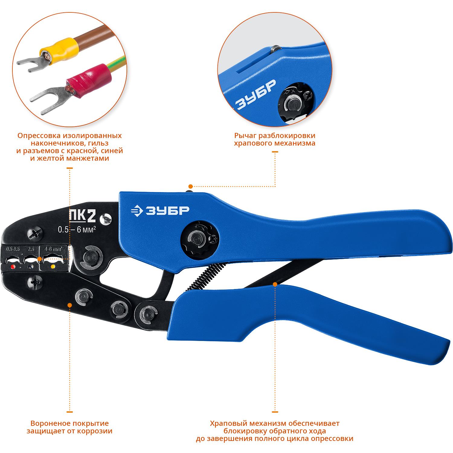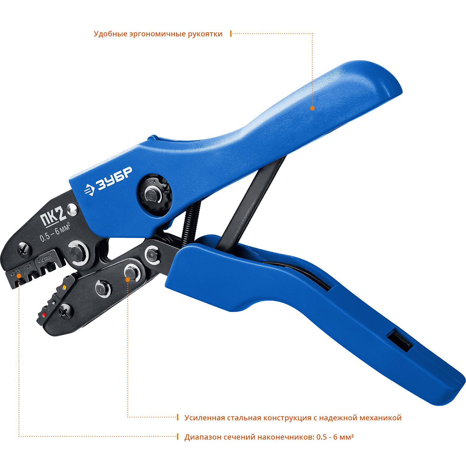 ПК-2 пресс-клещи для изолированные наконечников и муфт 0.5 -6 мм.кв, ЗУБР Профессионал