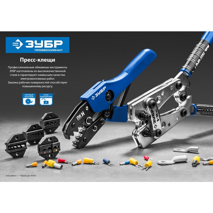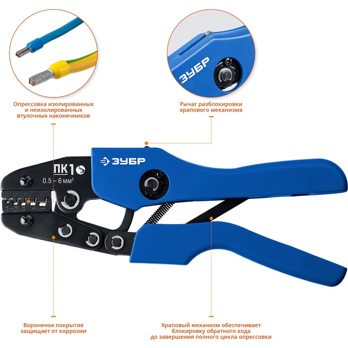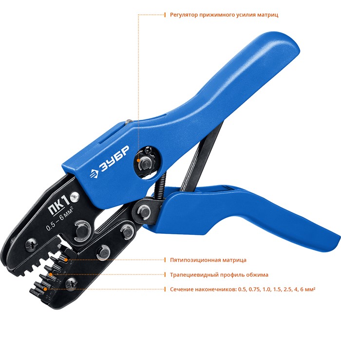 Кримперы ЗУБР изготовлены из высококачественной стали с закалкой рабочих поверхностей, предназначены для профессионального применения. Обладает повышенным ресурсом, обеспечивает наивысшее качество электромонтажных работ.