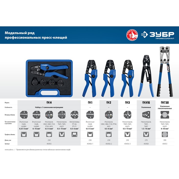 | Матрица для опрессовки втулочных наконечников, сечением:, мм2 | 0.5-4,0 |
