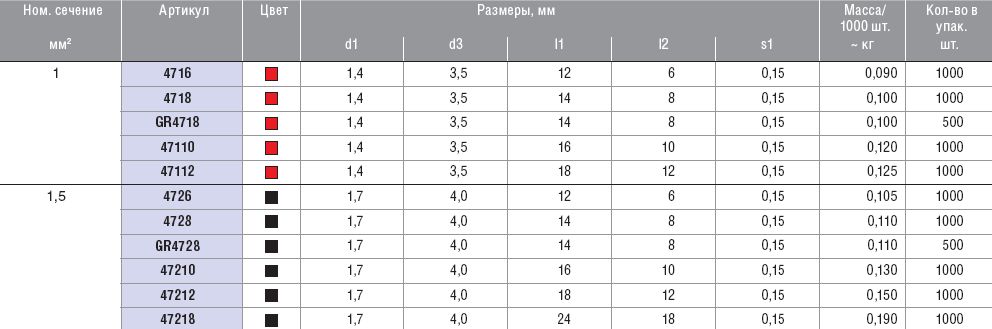 Цветовое исполнение и размеры втулки стандарта DIN 46228, часть 4.