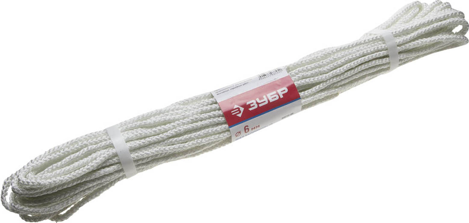 Фал ЗУБР капроновый, d=6,0 мм, 20 м, 650 кгс, 20,5 ктекс