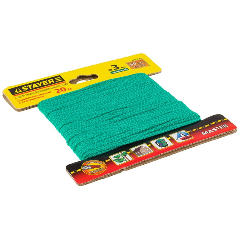 STAYER 20 м, 3 мм, полипропиленовый, вязанный, с сердечником, зеленый, шнур хозяйственно-бытовой 50412-03-020
