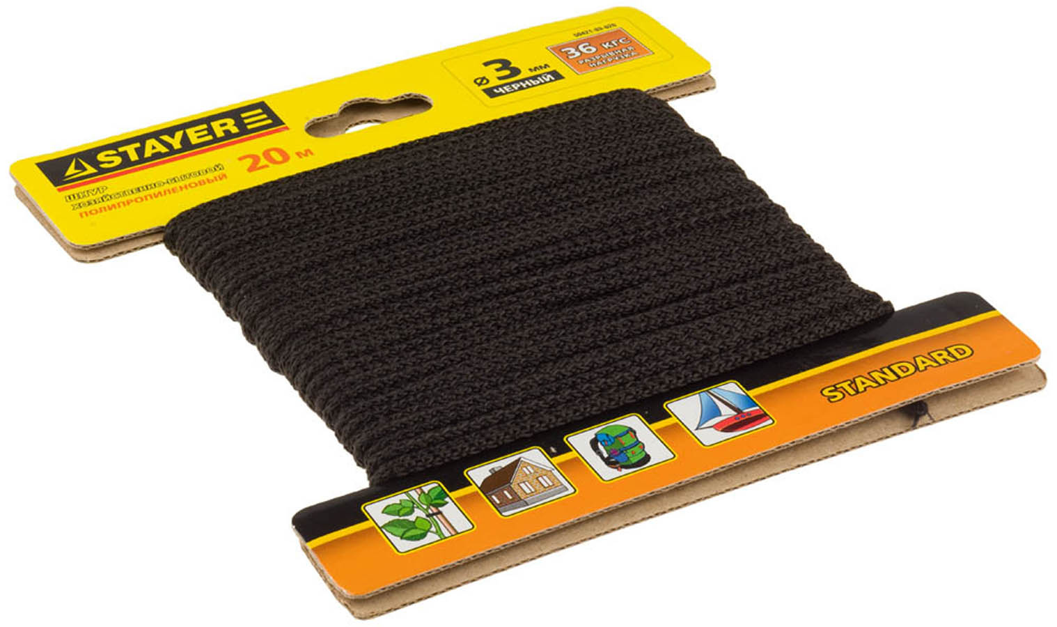 STAYER 20 м, 3 мм, полипропиленовый, вязанный, с сердечником, черный, шнур хозяйственно-бытовой 50421-03-020