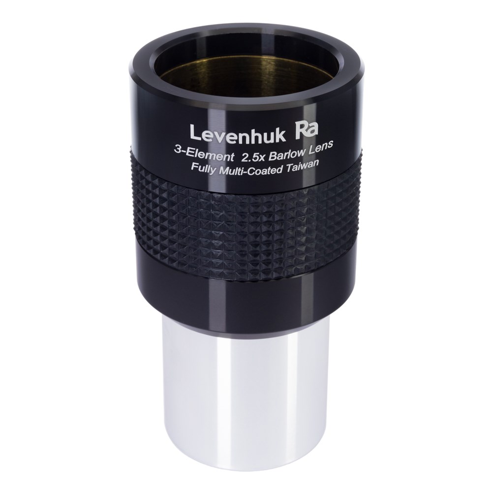 Для того чтобы легко и быстро, а главное – недорого расширить диапазон доступных увеличений телескопа, достаточно одного аксессуара. Апохроматическую линзу Барлоу Levenhuk 2,5x можно сочетать с разными окулярами, и с каждым она будет увеличивать общую кратность в 2,5 раза. При этом сама линза выполнена из стекла с многослойным просветляющим покрытием, позволяющим добиться отличного качества изображения при наблюдении. Линза Барлоу Levenhuk 2,5x поставляется в комплекте с защитными крышками. Посадочный диаметр соответствует стандартному значению 1,25 дюйма, что позволяет использовать ее с большинством современных телескопов. Также есть резьба под светофильтры.