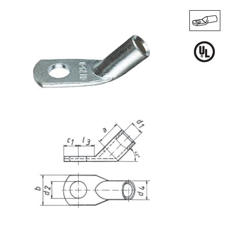 Медные угловые трубчатые кабельные наконечники облегченного типа (стандарт Klauke), угол 45°.
