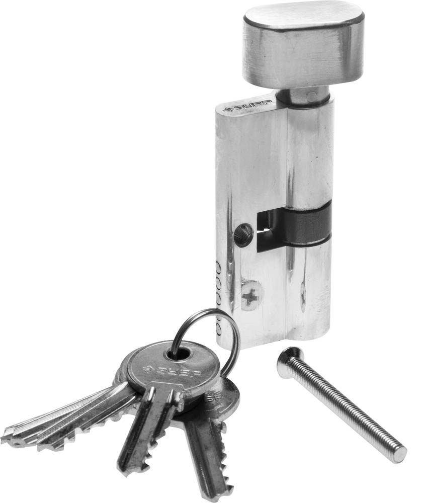 Механизм ЗУБР 52103-70-2, предназначен для запирания и отпирания дверных замков врезного типа. Цилиндровый механизм ЗУБР предназначен для запирания и отпирания дверных замков врезного типа. Они используются в качестве элемента секретности для предотвращения взлома. Устроен таким образом, что открыть его возможно только определенным ключом с уникальным кодом. Цилиндровый механизм состоит из металлического цилиндра, который встраивается в дверное полотно вместе с врезным замком. С одной стороны расположена личинка для ключа, с другой – запирающая вертушка. У некоторых изделий с обеих сторон имеются личинки.