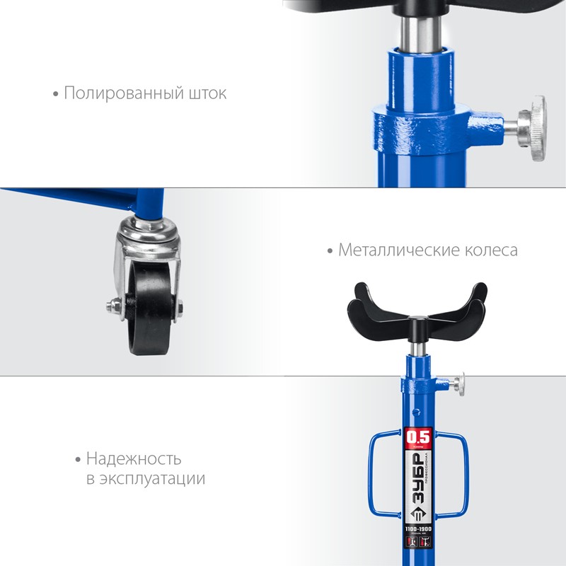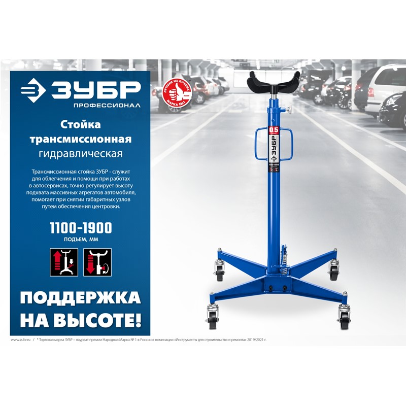 ЗУБР 0,5т 1100-1900мм стойка трансмиссионная гидравлическая, Профессионал