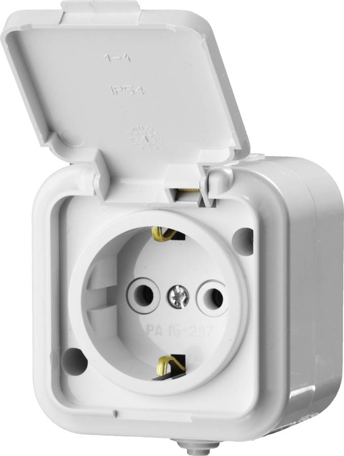 Розетка STAYER "MASTER" "MAXIMA" одноместная, с заземлением, с защитной крышкой, IP54, 16А, 220В