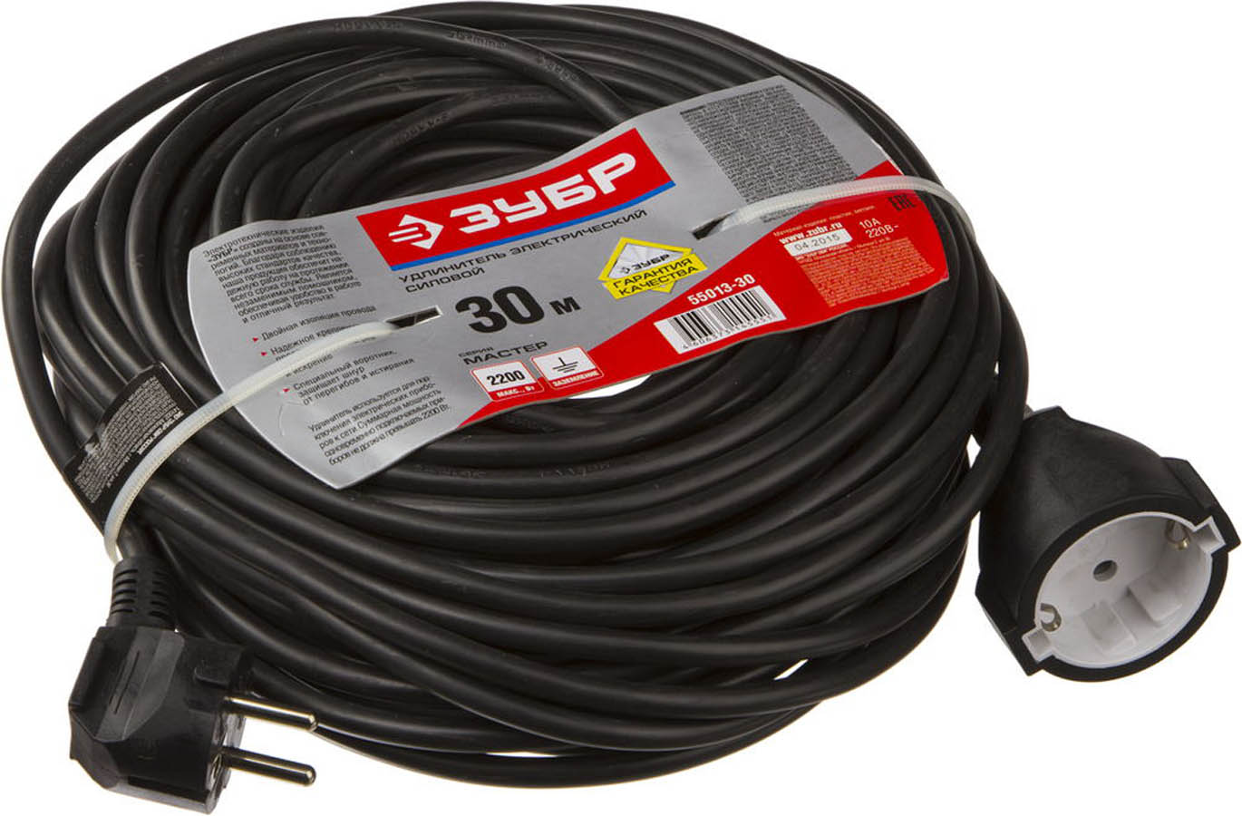 ЗУБР 30 м, 2200 Вт, 1 гнездо, удлинитель электрический силовой 55013-30