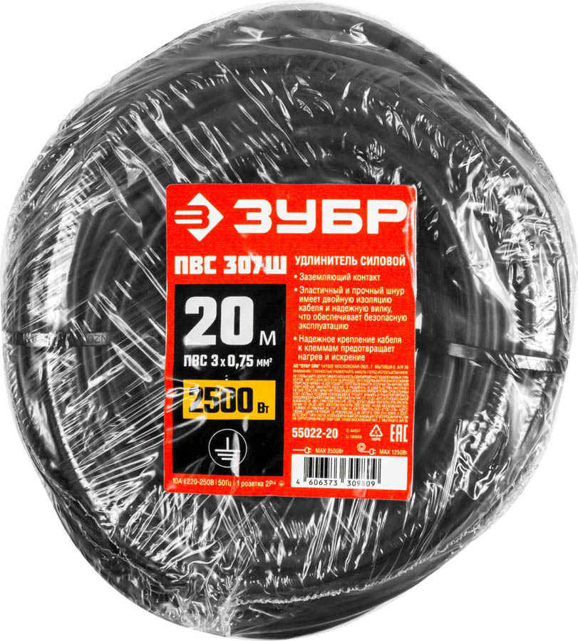 Удлинитель-шнур ЗУБР 55022-20, предназначен для подключения электрических приборов, которые находится на удалении от основного источника сети. Состоит из провода типа ПВС черного цвета и одной розетки. Облегчит работу на приусадебном участке, стройке или в быту. Эластичный и прочный соединительный шнур имеет двойную изоляцию кабеля и надежную вилку, что обеспечивает безопасную эксплуатацию Надежное крепление кабеля к клеммам, предотвращает нагрев и искрение для подключения электрических приборов к сети. Суммарная мощность одновременно подключаемых приборов не должна превышать 2500 Вт.