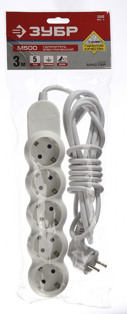 Удлинитель ЗУБР 55058-3, предназначен для использования в закрытых помещениях, например в загородных домах, квартирах, офисных помещениях и т. д. Используется для одновременного подключения одного или нескольких бытовых электрических приборов расположенных на расстоянии от питающей сети.