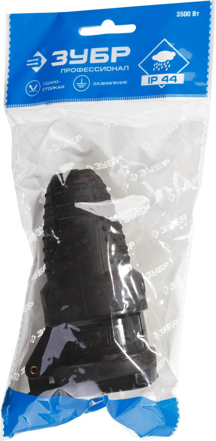 Розетка ЗУБР "ПРОФЕССИОНАЛ" электрическая обрезиненная, 16А/250В, IP44, черная