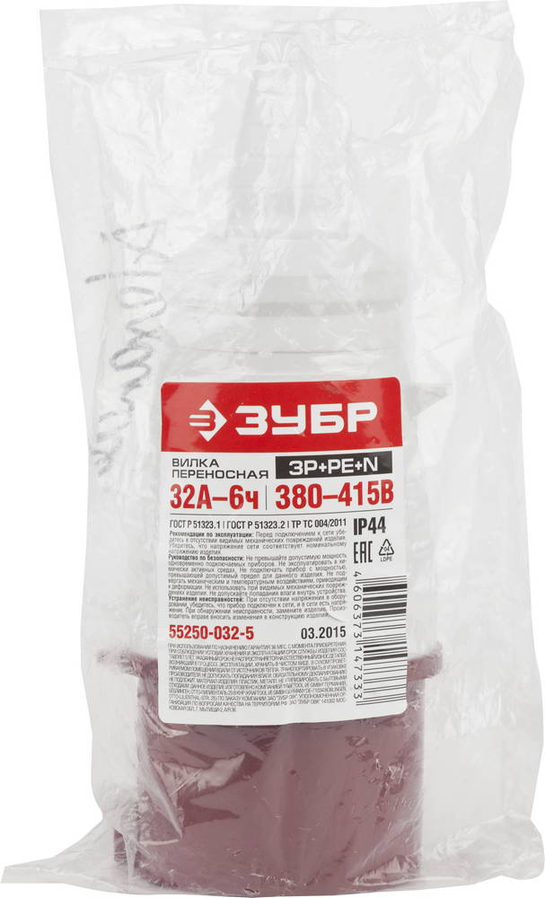 Вилка ЗУБР "МАСТЕР" переносная, 32A, 400B, 6ч