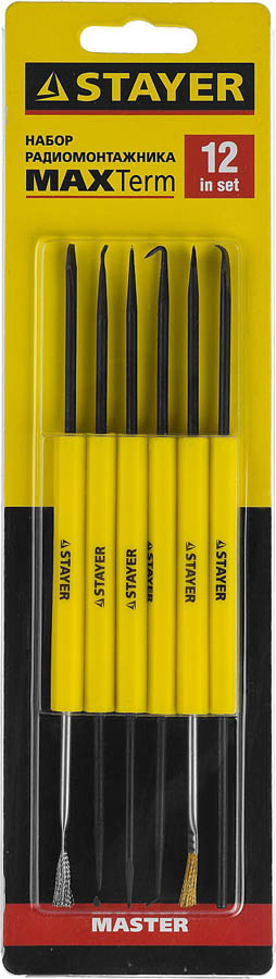 Набор радиомонтажника MAXTerm STAYER 55338-H12, предназначен для радиомонтажых работ. Наконечники 12 вариантов. Высококачественная сталь. Легкая и удобная пластиковая рукоятка. Паяльное оборудование STAYER создано на основе современных материалов и технологий. Благодаря соблюдению высоких стандартов качества, инструмент обеспечит надежную работу на протяжении всего срока службы. Является незаменимым помощником, обеспечивая удобство в работе и отличный результат.