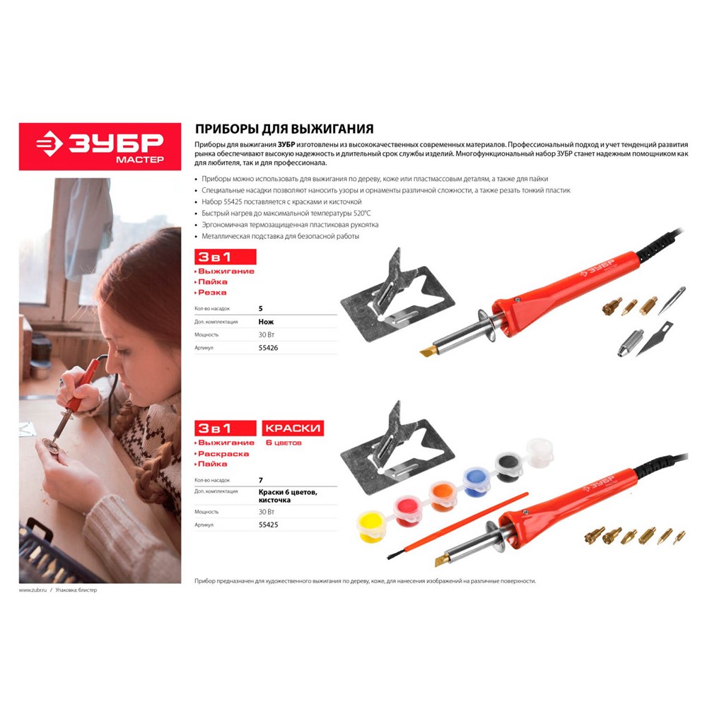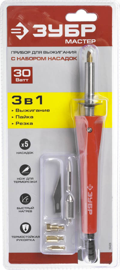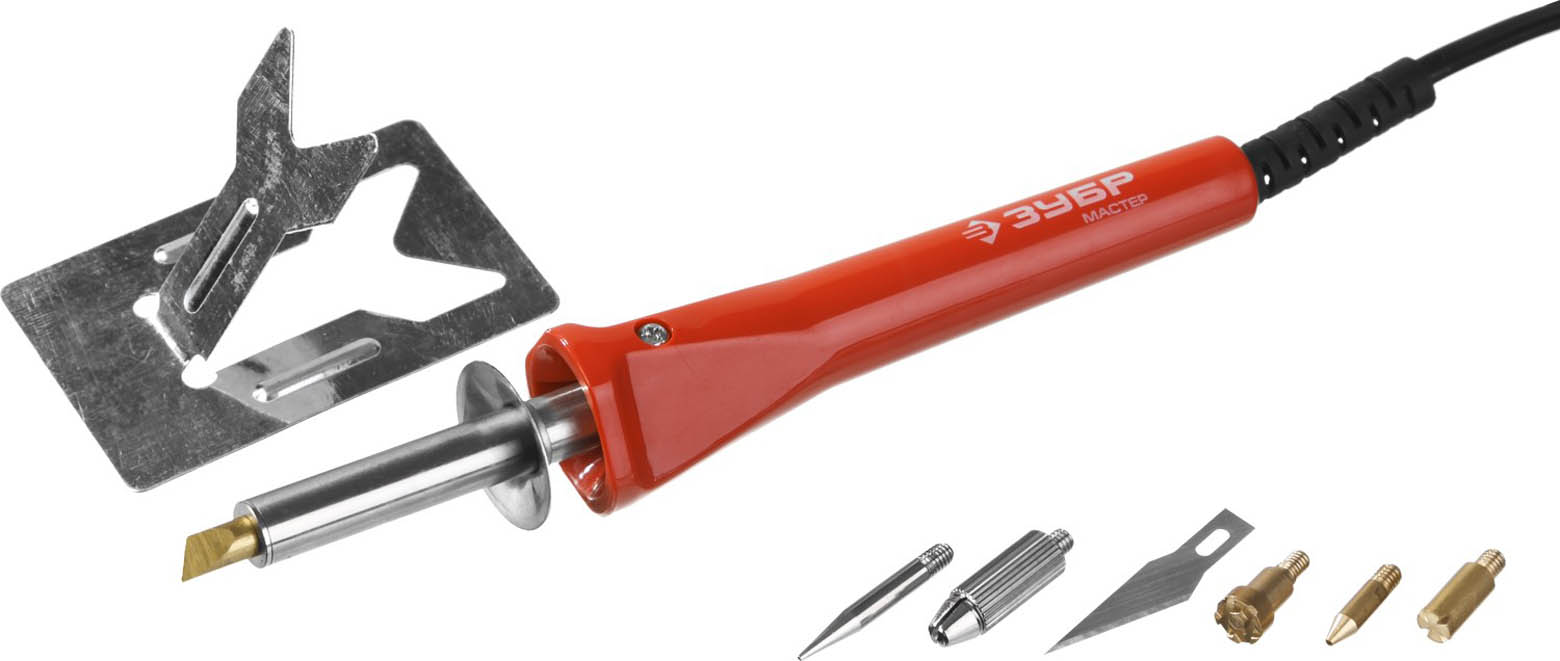 Прибор ЗУБР "МАСТЕР" для выжигания, пайки, резки с набором насадок, 5шт+нож